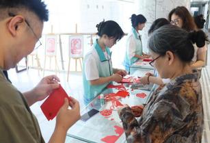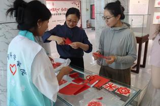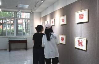 在现场的剪纸手工体验区,两位志愿者现场示范剪纸,红纸在他们手中化作灵动图案。师生们纷纷参与,执剪尝试,在传统技艺的互动体验里,感受剪纸艺术的独特魅力,为展览增添了生动的文化交流氛围。