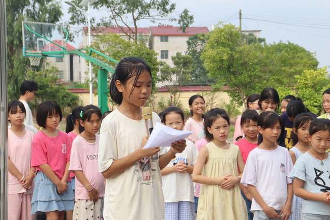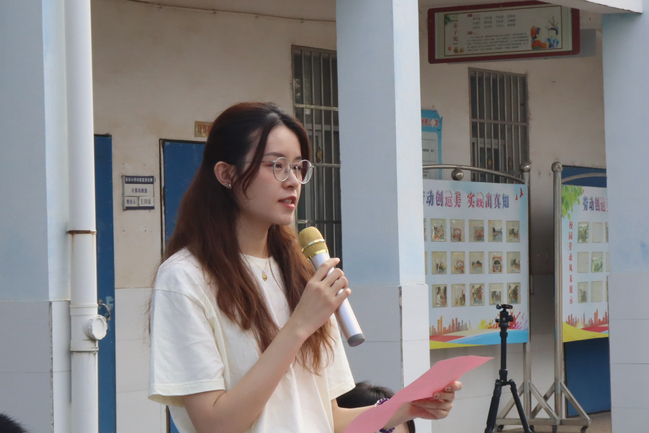 随后,“童心圆”公益支教团队带队老师余宛琳上台发言。她向长乐小学的全体师生致以诚挚的问候,并对支教团队进行了介绍。她强调,志愿者老师们将充分发挥自身专业优势,深度融合江西吉安本土文化元素,创新课程形式,通过丰富多样的实践活动,引导孩子们深入领略传统文化的独特魅力,激发课堂活力,让知识在实践中得以升华。