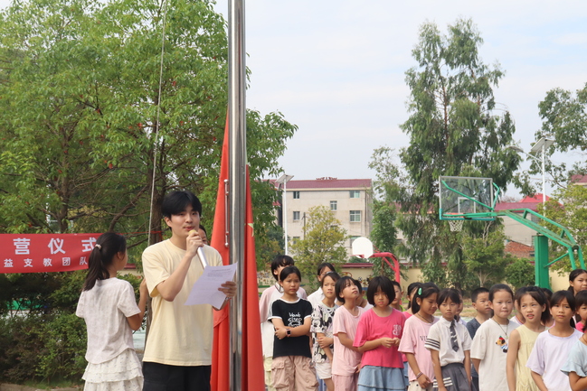 上午八点半,开营仪式在庄严的升旗仪式中正式拉开帷幕,全体人员齐声高唱国歌,嘹亮的歌声奏响了本次支教活动的激昂序章。