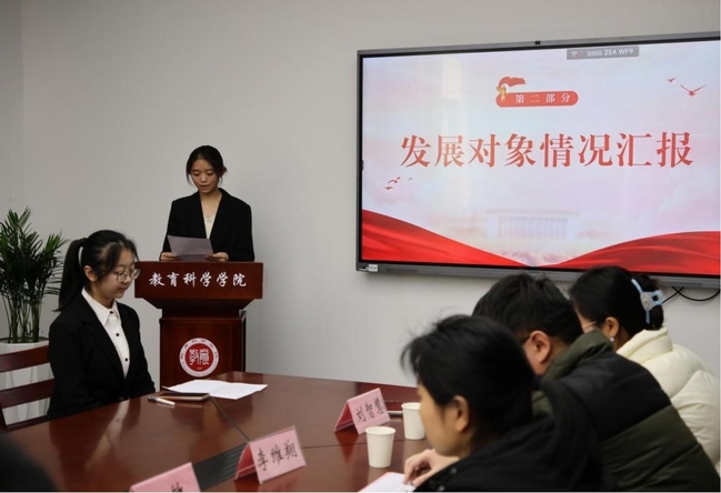 14名发展对象依次作思想汇报,他们结合自身成长、学习与实践经历,阐述了对党的深刻认识、纯正的入党动机以及向党组织靠拢的坚定决心。汇报情真意切,展现了新时代青年将个人理想融入党和国家教育事业、立志为人民服务的信念与担当。