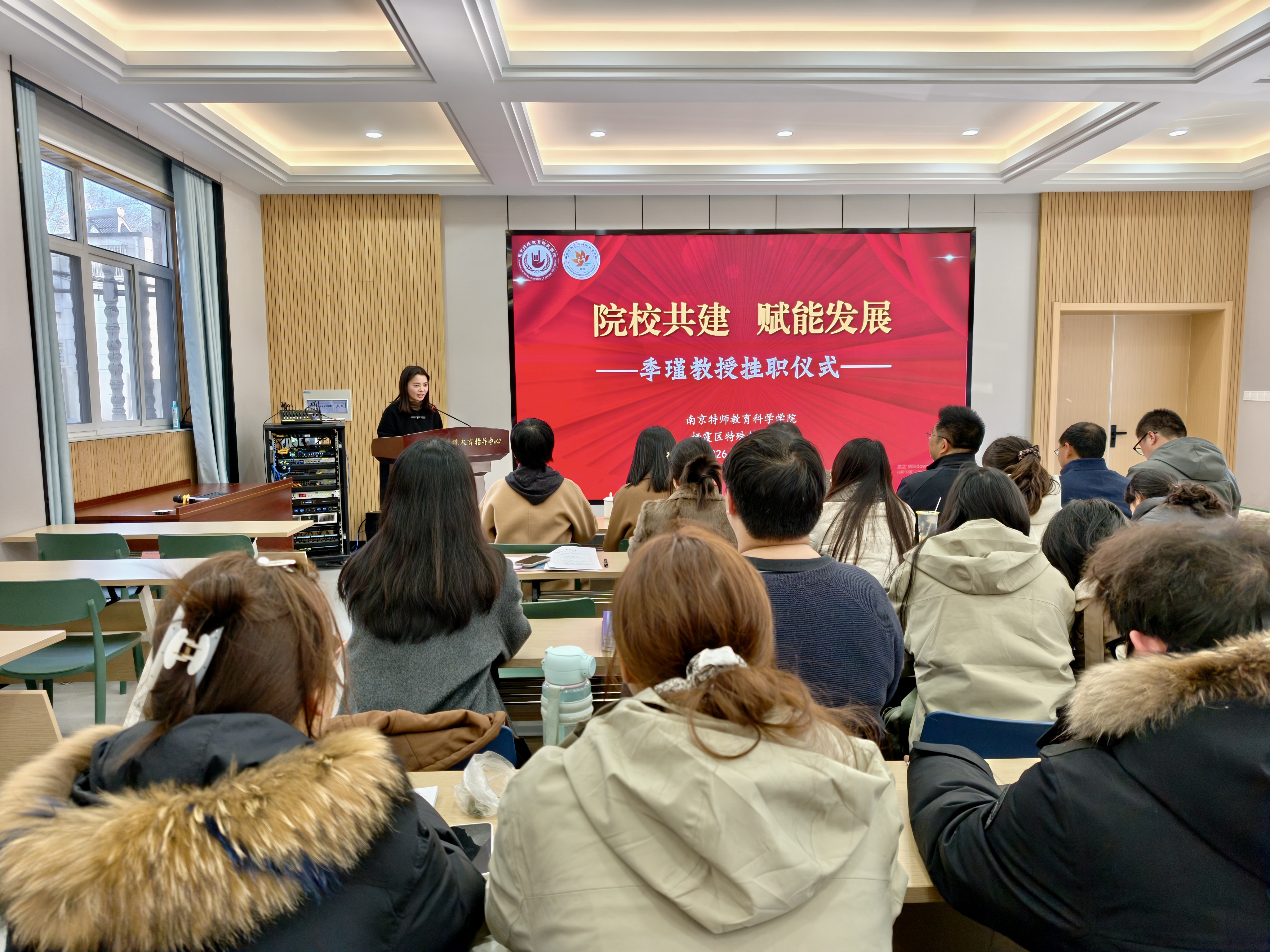 为进一步深化校地协同合作,推动特殊教育高质量发展,365best体育官网登录选派季瑾博士、副教授赴南京市栖霞区特殊教育公司挂职锻炼。2026年3月13日下午,挂职仪式在栖霞特校成功举办。南京市栖霞区教育局副局长陈婷婷,栖霞区特殊教育公司董事长汤一梅、副董事长陈刚和公司党总支书记杨龙祥、经理刘新学等参加活动。