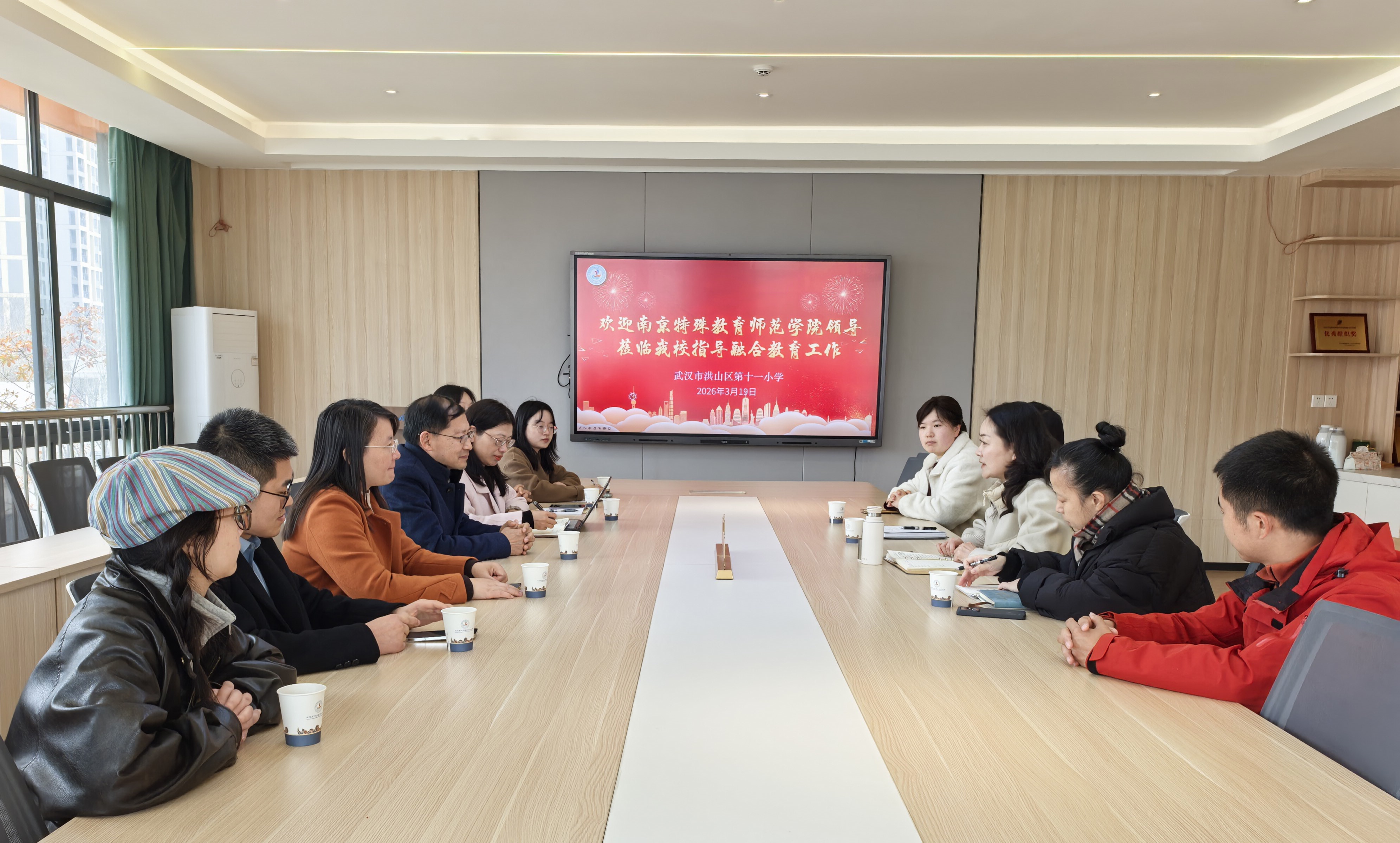 在武汉市洪山区第十一小学,调研组深入了解该校在随班就读、资源教室运营、特殊员工个案跟踪等方面的实践经验。双方围绕小学融合教育团队短缺、教师专业素养提升、未鉴定特殊需求员工识别与支持等现实问题展开坦诚而深入的交流,重点探讨高校融合教育人才培养与小学一线岗位需求精准对接的实践进路和测评框架。